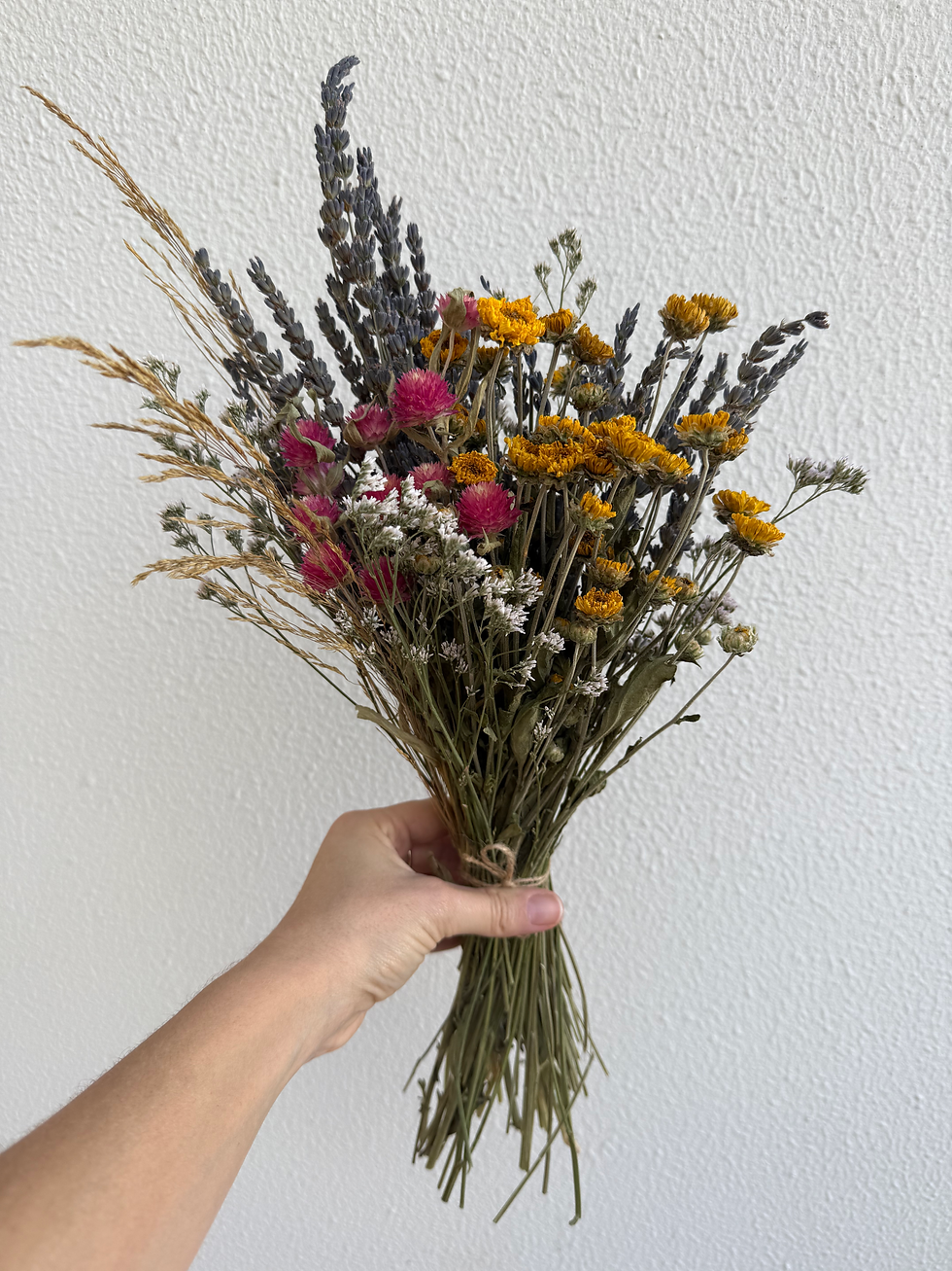 כל הזרים שלנו מורכבים מפרחים טריים שאנחנו מייבשים אצלנו בסטודיו, הפרחים מחזיקים מעמד לאורך זמן ללא צורך בהשקייה ובטיפול